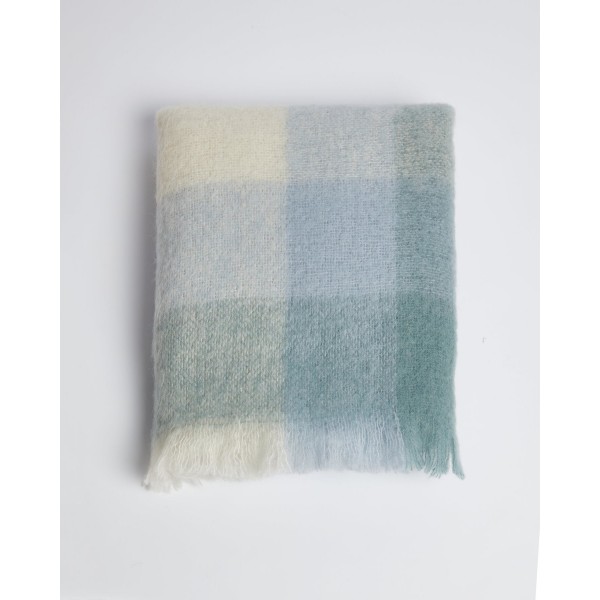 Designed at our County Mayo mill, FOXFORD mohair throws are a fluffier alternative to pure lambswool. Woven in our signature block-check print using light blue and green yarn, the Clew Bay Throw is named after a natural ocean bay in County Mayo. Each throw is finished with a traditional raw edge fringe and individually quality checked before leaving the mill.